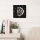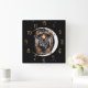 Reloj mágico en la pared de la cocina con una bruja de cocina y luna creciente.
