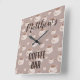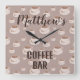 Perfecto para su zona de producción de café este reloj cuadrado de pared, con granos de café y tazas están personalizadas con su nombre.