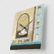 COLOR PALETTE: Colección de diseño de chocolate marrón, tostado, mocha, espresso, azul, azul verde azulado, azul acuático y crema: De una de las colecciones de arte más apreciadas de Audrey Jeanne Roberts llamada "Deja' Brew", esta obra ha sido creada como un divertido juego de decoración moderna y caprichosa. A la derecha se apilan una variedad de tazas de café, tazas y platillos. Se presenta un diseño floral caligráfico, rayas, con puntos y círculos, un moca helado con una ceja batida y flores con puntos de polka y motivos de hojas. Los fondos son de color negro espresso pintado a mano, grueso, texturado, con un azul verde azulado de la misma apariencia y un mocha de luz cremosa con remolinos pintados a mano y texturas. Hay una imagen de arte de señas de la tienda con una parte superior redondeada, borde de tablero de ajedrez azul y marrón y acabado crujiente, patrón de damasco y frijol de café con una taza de espresso, una cuchara de oro y un vapor curvando hacia arriba. El texto dice: "Abre las 24 horas, ¡solamente servimos lo mejor!" y se puede personalizar con un nombre, mostrado aquí con "Papa's Coffee Shoppe".