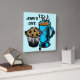 This Coffee with Muffin design features a blue mug, steaming coffee and a muffin. Customizable text is "your name & Cafe" Customizable to change the background color. Perfect for your kitchen.