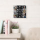 Crea tu propio reloj de collage de fotos personalizado con esta plantilla fácil. Este reloj cuadrado y elegante tiene números blancos alineados en el medio en un rectángulo largo de estilo deco y un fondo negro liso que puedes "personalizar" con la imagen o color que desees. A lo largo de los bordes, hay espacio para que agregues ocho de tus fotografías cuadradas favoritas. Simplemente cambia las plantillas a tus propias imágenes. También puedes agregar texto personalizado en el medio o eliminar los campos de texto de muestra. Utiliza la herramienta de diseño para cambiar las fuentes o la ubicación del texto. Este reloj de collage de fotos es una forma hermosa de mostrar recuerdos de la familia o la boda.