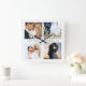 Reloj Cuadrado Collage de fotos cuatro con el texto de encargo