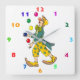 Un divertido reloj de pared blanco para los niños, con números coloridos, y un ilustracion digital de un lindo payaso malabarista. Disponible en otras opciones. Visita nuestra tienda para más Clocks y otros regalos.