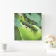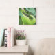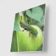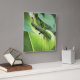 Un gecko tratando de mezclarse y esconderse en la hoja verde.