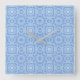 Combinación armoniosa de patrones geométricos lineales que se asemejan a un horizonte urbano tranquilo, adornado con delicadas estrellas y suaves soleadas en tonos azul pálido