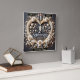 Celebre su primer aniversario de boda con un impresionante diseño en forma de corazón que encarna elegancia y romance. El lujoso fondo negro resalta intrincadas flores de papel, detalles ornamentales de origami y acentos de perlas que simbolizan el crecimiento y el amor. Tres velas brillantes añaden calidez, mientras que el brillante texto del "primer aniversario" enmarcado por motivos florales crea una pieza central atemporal. Con marfil, oro y plateado realzando su belleza, este diseño es perfecto para conmemorar su hito especial. Ideal para mantener pasteles, invitaciones o decoraciones, representa maravillosamente el amor perdurable y los recuerdos preciados.