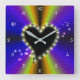 Reloj Cuadrado Corazón negro con estrellas en arcoiris amarillo p