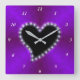 Reloj Cuadrado Corazón negro con estrellas en arcoiris rosado mor