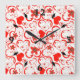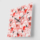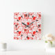 Reloj Cuadrado Corazones rojos y flores en blanco