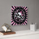 Calavera suave y huesos cruzados rodeados de corazones y estrellas con mucho rosado. ¡A las damas les encantará este cráneo de niñita!