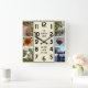 A lo largo de los bordes, hay espacio para que agregues seis de tus fotos favoritas: 4 imágenes de 5x7 y 2 cuadrados, al estilo de Instagram. Simplemente "cambia" las plantillas a tus propias imágenes.También puede agregar texto personalizado al medio o eliminar los campos de texto de ejemplo. Si desea personalizar más, haga clic en "Personalizar". Este reloj de collage de fotos sería hermoso por mostrar recuerdos familiares o bodas.