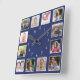 Reloj Cuadrado Create Your Own 12 Family Photo Collage Blue