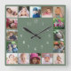 Reloj Cuadrado Create Your Own 16 Family Photo Collage Green
