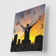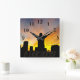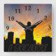 Reloj, reloj de pared: Una persona de pie mirando la puesta de sol sobre la ciudad creyendo en su señor, sueños y objetivos.