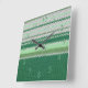 Green striped pattern of single crochet stitch. Larger stripe is dark green, then a light green with a gray-green, interspersed with white. Numerals are dark green outlined in light green.