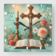 Reloj Cuadrado Crucifix Candlelight Biblia Flor Jesus