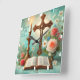 Este profundo reloj cuadrado de pared se centra en un crucifijo radiante bañado de luz dorada, acompañado de una vela parpadeante sobre un portaobjetos ornamentales. Una Biblia abierta descansa reverentemente abajo, rodeada por una delicada variedad de rosas rosas rosas, margaritas blancas y flores azules, con las palabras "Jesús es mi Señor y Salvador" sutilmente integradas, creando una pieza verdaderamente espiritual.