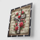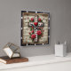 este encantador reloj cuadrado de pared cuenta con una rústica cruz de madera adornada con un destacado corazón rojo en el centro y corazones más pequeños a lo largo de su viga vertical. Está rodeada de rosales rojas vibrantes y espesos delicados, sobre un fondo de madera angustiado, que simboliza el amor divino y la devoción espiritual.