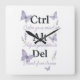Mantenga el tiempo con la inspiración usando este reloj de pared de mariposa Ctrl + Alt + Supr. Adornado con mariposas acuarelas, acentos de lavanda, y las palabras que los elevan — Tranquila mente, Ajusta tu actitud, Desvíate del drama — este reloj es más que funcional, es un recordatorio diario de pausa, reinicio y actualización. Una bella adición a cualquier hogar, oficina o espacio de meditación
