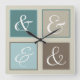 Reloj Cuadrado Cuadrados Ampersand, Verde azulados, azules, marro