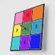 Cuadrados arcoiris en reloj de pared negro Coloridos cuadrados arcoiris sobre un reloj de pared diseñado de fondo negro. Por celeste@khoncepts.com