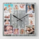 Reloj Cuadrado Custom 12 Family Photo Collage Rustic Gray Wood