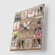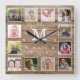 Reloj Cuadrado Custom 12 Photo Collage Family Name Monogram Wood