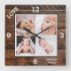 Reloj Cuadrado Custom 4 Photo Collage Family Name Love Dark Wood