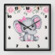 Reloj Cuadrado Cute Pink Baby Elephant and Roses Border