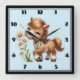 Un reloj con un ilustracion adorable. Un pequeño poni marrón comiendo alegremente margaritas.