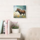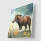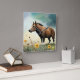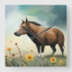 Reloj Cuadrado Cuto pony marrón en el campo floral