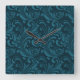 Intricate dark teal floral damask pattern, featuring symmetrical, swirling leaf motifs against a deep background, conveying elegance and sophistication.