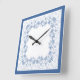 Reloj cuadrado de bonito, con un delicado patrón floral azul índigo en un fondo blanco que se puede cambiar si se desea. Parte de la colección "Índigo" de Posh y Painterly.