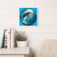 Un delfín bajo el agua con rayos de luz solar filtrándose a través del agua. Las palabras 'bucear profundo, vivir libre' están escritas encima de la imagen. Un reloj maravilloso con un mensaje inspirador. Contiene contenido generativo.