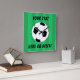 Diseño moderno de temática futbolística con un gráfico de fútbol blanco y negro en un campo verde. Personalizar con su nombre o texto haciendo clic en el botón personalizar.