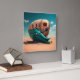 A desert monster house in the shape of a house, in the style of surreal seascapes, photorealistic renderings, light aquamarine and beige, playful character designs