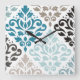 Reloj Cuadrado Desplazar Damask Offset Ptn Art Teals Browns White