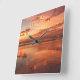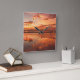 Un hermoso naranja y un reflejo dorado del cielo atardecer del océano. Dos surfistas esperan por las últimas olas en esta tranquila memoria costera.