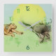 - Colorido dibujo original de verde y amarillo, Reloj cuadrado, presentando León persiguiendo a un búfalo. - Dibujo digital original de Raphael Studio - 'Chase'. - Diseño elegante, artístico y único.