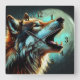 Reloj Cuadrado Dibujo de lobo aullando a la luna con pasteles dur