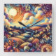 Reloj Cuadrado Dibujo de Pastel Paisaje Abstracto