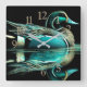 Reloj Cuadrado Dibujo de Pastel Pato Teal en Agua