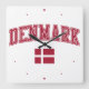 Este artículo tiene DINAMARCA en un estilo colegiado en un arco sobre la bandera danesa. El diseño utiliza los colores daneses del rojo y el blanco. La bandera de Dinamarca es roja con una cruz escandinava blanca que se extiende hasta los bordes de la bandera.