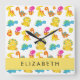 Reloj Cuadrado Dinosaurios Cutos, Patrón De Dinosaurios, Tu Nombr