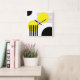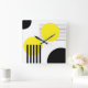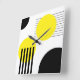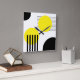 ilustracion de diseño abstracto con formas geométricas (círculos y rayas) en colores amarillos y negros sobre fondo blanco.