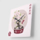 arte digital de un bonsai floral con flores de flores de cerezo, un pájaro y la luna en un fondo rosado con la palabra "quédate genuino" escrita en chino. Hermoso diseño oriental llamativo en tonos suaves. Bellamente diseñado para tener un aspecto único y originalidad.