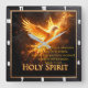 This incredibly moving and inspiring design celebrates faith and the eternal message of the Holy Spirit. The artwork features a majestic Dove of the Holy Spirit rising from a blaze of gold and orange light, with its wings fully spread against a background of smoky clouds. A central clock motif overlaid on the image symbolizes the sacred timing of answered prayers. The image contains the powerful Bible verse, "Therefore I tell you, whatever you ask for in prayer, believe that you have received it, and it will be yours. Mark 11:24." The highest quality print and artwork used on the surface is so exceptional it creates a stunningly realistic tactile illusion of brilliant, glowing fire. Personalized with the spiritual and "Holy Spirit" this impressive religious gift is a perfect choice for anyone who seeks inspiration, divine guidance, and belief in the power of their prayers.