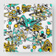 Reloj Cuadrado Doodle, abstracto