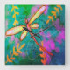 Reloj Cuadrado Dragonfly artístico abstracto colorido