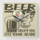 Ayudas de la cerveza que usted siente joven otra vez. ¡Este sediento, muchacho retro hecho frente peca que soporta una taza fría de cerveza hará que usted siente como usted ha encontrado la fuente de la juventud!